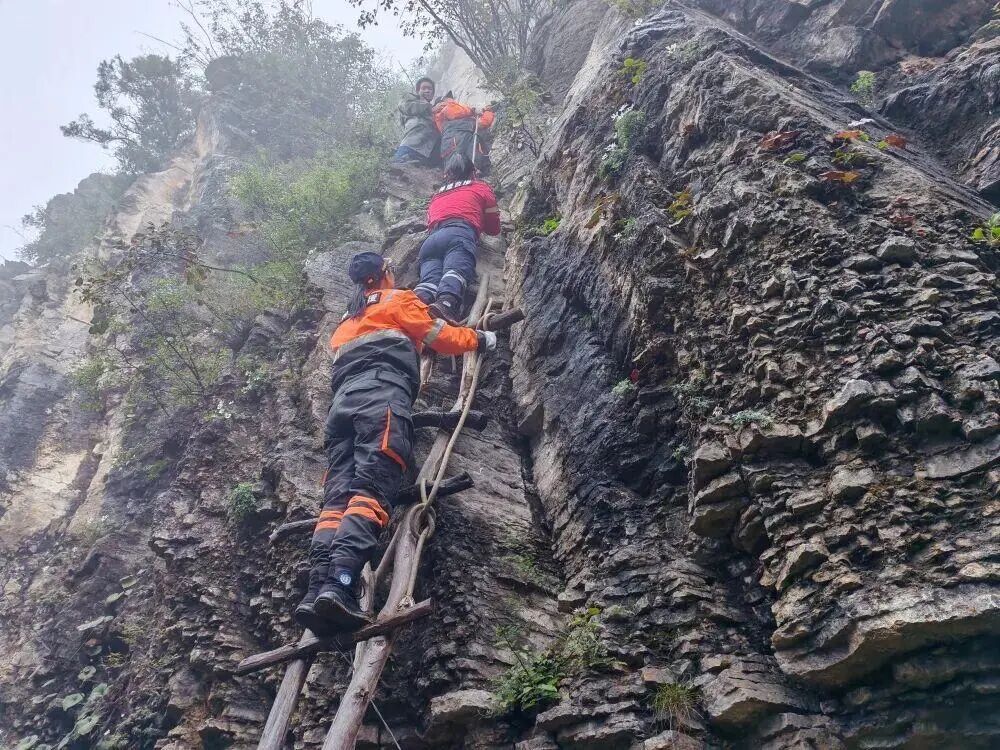 救援人员在南太行搜救画面