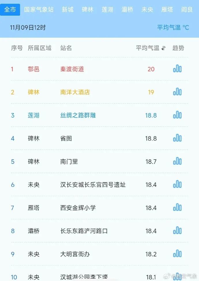 西安最高气温达到20℃