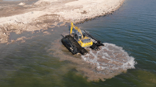 △两栖无人挖掘机进行作业