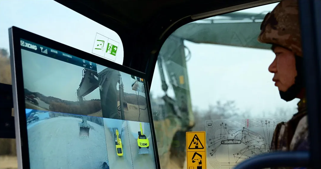 △官兵远程操作无人设备执行挖掘任务